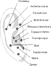 Самомассаж ушной раковины. Ушная раковина является местом соединения всех каналов, по которым течет жизненная энергия, благодаря чему она связана со всеми внутренними органами и системами организма. На ухе имеется более 170 биологически активных точек. Во время каждого выдоха указательными пальцами обеих рук одновременно на правой и левой ушной раковинах нажимайте 20 раз на каждую нужную одну или несколько точек до лёгкой приятной боли. Во время вдоха нажимать на неё не нужно. Другими словами: выдох – нажатие, вдох – отпускаете пальцы. Массаж проводить для профилактики один раз, а при плохом самочувствии 2-3 раза в день. Начинайте массаж с точки, связанной с тем органом, который вас беспокоит. Если заболевание вызвано воспалением или нарушением обмена веществ, то после неё переходите к эндокринной точке, а если недомогание связано со спазмами или с нарушениями вегетативной нервной системы, вместо эндокринной используйте вегетативную. Например, при боли в пояснице, массируйте утром и вечером точки поясницы – эндокринная – мозга, а днем проводите самомассаж точек поясницы – вегетативная – мозга. При множестве болезней лучше комбинировать следующую последовательность массажа точек: эндокринная - вегетативная - головной мозг. Если трудно сориентироваться для нахождения точек, то можно делать самомассаж ушных раковин с помощью следующих упражнений: 1. Захватить мочки ушей указательным и большим пальцем и оттягивать их вниз. 2. Плотно обхватив ушную раковину пальцами, потяните ее с умеренной силой вниз и затем вверх, потом и в стороны. 3. Ладони положить на уши и выполнять поглаживающие и растирающие легкие движения. 4. Плотно прижмите ладони к ушным раковинам и резко разведите руки. При этом должен быть слышен легкий хлопок. 5. Массаж противозавитка (зоны позвоночника). Концы указательного и большого пальца с силой скользят вниз по всей длине противозавитка. 6. Растирание за ухом - растирание сосцевидного отростка. Указательным и средним пальцами осуществляются поглаживающие и растирающие движения. Обмывание мест вокруг ушей и за ушами холодной водой можно тоже рассматривать как оздоровительный массаж. Каждое упражнение повторять 20 раз.