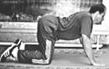 1. Стоя на коленях, руки упираются в пол. Максимально выгнуть спину в грудном отделе позвоночника, подбородком стараться коснуться грудной клетки, смотреть вниз. Удерживать позу на полувыдохе 5-6 секунд. Затем максимально прогнуться, смотреть вверх, медленно выдохнуть. Позу удерживать 5-6 секунд. Повторить упражнение 6 раз, стремясь прогибаться как можно больше.