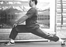 Правая нога впереди вас и левой ногой. Упираясь в стену руками, согните туловище вперед, одновременно выдвигая его назад с помощью рук. Сделайте упражнение в другую сторону, растягивая мышцы передней верхней области бедра. Держите каждое растяжение мышц минимум 30 секунд.