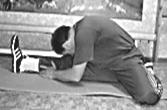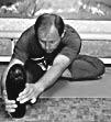 3. Сесть на пятки. Выдыхая, наклонять туловище вперед, пока грудь не коснется бедер. Не изменяя положения, потянуться руками по полу вперед. Вернуться в исходное положение, вдохнуть, расслабиться и отдохнуть. Повторить упражнение 4 раза. В этом положении наиболее эффективно вытягивается пояснично-крестцовый отдел позвоночника. Упражнение рекомендуется для снятия болей.