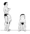 2)Выдохните и согнитесь вперед в талии, пока ладони не коснутся пола. Не сгибайте колени при выполнении.