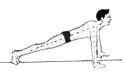 5)Выдохните, согнув обе руки в локтях и касаясь лбом, коленями пола, держа оба локтя близко к груди. Лоб, грудь, обе ладони, пальцы ног, колени должны коснуться пола, кроме живота.