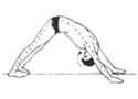 7) Задержите дыхание, согните шею вниз и коснитесь подбородком груди, выдвиньте тело назад и коснитесь пятками пола, поднимите талию вверх, не перемещая ладони по полу, согните шею.