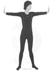 Встаньте прямо, пятки и носки вместе, руки опущены. Выпрямите спину, и сблизьте лопатки, подтяните живот. Голова чуть приподнята, глаза смотрят выше линии горизонта. Для ликвидации сутулости и проявления шейного остеохондроза стоять у стены, так, чтобы пятки, задняя поверхность ног, ягодицы, лопатки и затылок прижались к ней как можно плотнее, а руки заведены за спину и пальцы соединены, сведите лопатки и отклоните голову назад.