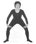 Из исходного положения прыжком принимаете позу всадника (с широко расставленными полусогнутыми ногами), туловище слегка наклоняете вперед, спина остается ровной. Ладони положите на колени так, чтобы большие пальцы находились на боковых поверхностях ног, остальные - на внутренних, локти выдвинуты вперед. Делая глубокий медленный вдох, описываете головой дугу в 180 градусов из верхнего положения через правую сторону вниз. При этом напрягаете левое плечо и шею, будто на них находится невидимый груз. Через шесть секунд голова оказывается в нижнем положении, туловище при этом наклонено горизонтально. Затем описываете дугу в обратном направлении, вверх. Находясь в крайнем нижнем положении поклона, делаете паузу, пальцы от коленей не отрываете. Затем медленно поднимаете корпус, как бы преодолевая невидимую преграду. Когда туловище оказывается в верхнем положении, максимально отклоняете голову вверх и назад. Делая выдох, расслабляетесь и очень медленно возвращаете голову в естественное положение. Вращение тела, многократные повороты и поднятия головы при наклонном положении туловища пробивают блоки в шее и пропускают энергию в мозг. 6. Обхватывание пальцев ног обеими руками для усиления почек. От выполнения данного упражнения увеличивается подвижность поясницы, укрепляется позвоночный столб. Упражнение оказывает положительное воздействие на почки и способствует излечению почечных болезней. Встаньте прямо, ноги вместе. Делая вдох, поднимаете энергию вверх в грудную клетку. Для этого надо поджать живот и мысленно поднять все, что внутри: воздух, энергию и прочее. Грудная клетка при этом расширяется.