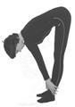 9)Выдохните, поставьте правую ногу вперед как в позиции 2, и разместите между обеими руки. Пробуйте коснуться лбом коленей.