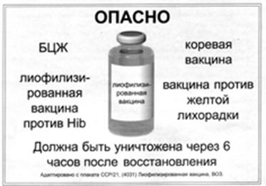 - Использование не предназначенного для данной вакцины растворителя, или другого препарата для восстановления вакцины может превратить такую вакцину в неэффективную или опасную.