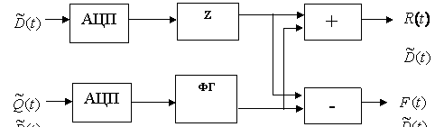 Так как ФГ реализуется в цифровом виде, обрабатываемый сигнал должен быть оцифрован посредством АЦП. В этом случае тракт обработки прямого и квадратурного канала имеет вид, показанный на рис. 1.25: