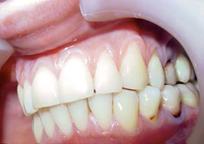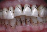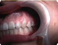Иногда при локальной рецессии отмечается образование уплотненного десневого валика(фестон Маккола – McCall’s feston),который чаще всего бывает выражен навестибулярной поверхностив области клыков и премоляров (рис. 7). Также отмечается нарушение целостности десны, которая напоминает разрез десневого края(щель Стильмана – Stillman’s Clefts (рис. 8)).При этом в клинике при ЛР происходит обнажение шейки зуба и частиего корня, что приводит к эстетическим недостаткам и повышеннойчувствительности обнаженных поверхностей к термическим и химическим раздражителям.Неровный пришеечный контур, особенно при треугольной формы рецессиидаже при отсутствии гиперчувствительности затрудняет проведение гигиены, увеличивая вероятность кариеса корня. Агрессивная чистка зубов приводит к потере твердых тканей зубов в пришеечной области и возникновению клиновидных дефектов.