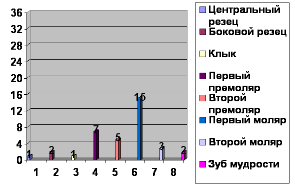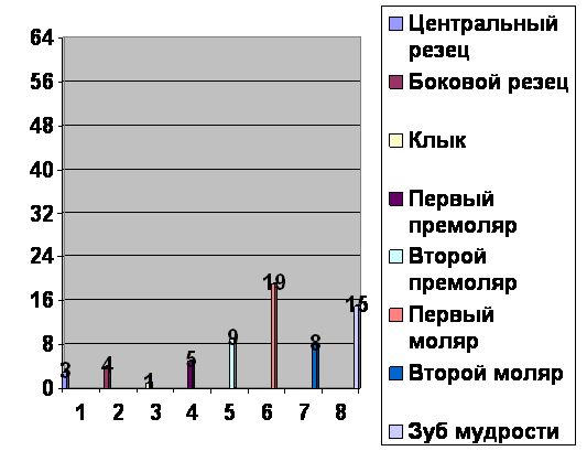 ( почти в 90 % случаев, что превышает литературные данные почти на 20%), реже - нагноившиеся радикулярные кисты, альвеолиты и ретинированные зубы ( примерно с одинаковой частотой). Прослеживается сезонность заболеваемости данной патологией – наиболее высокий процент обращаемости приходится на осенний период ( таблица 3 ). Частота встречаемости на нижней челюсти 64%, причиной возникновения воспаления наиболее часто являются первые большие коренные зубы ( в 19% случаев ), на верхней челюсти – 36%, наиболее часто причинные зубы – первые большие коренные зубы ( в 15% случаев ( таблица 4 ).