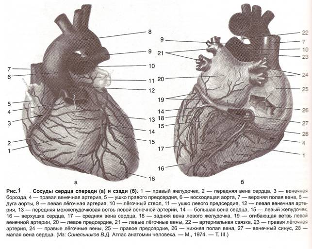 Система венечных артерий и венозные сосуды формируют так называемый третий круг кровообращения у человека. Различают следующие сосуды сердца (рис. 1).